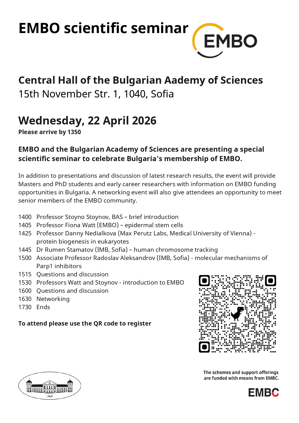 Покана за научен семинар на EMBO - 22 април 2026г.