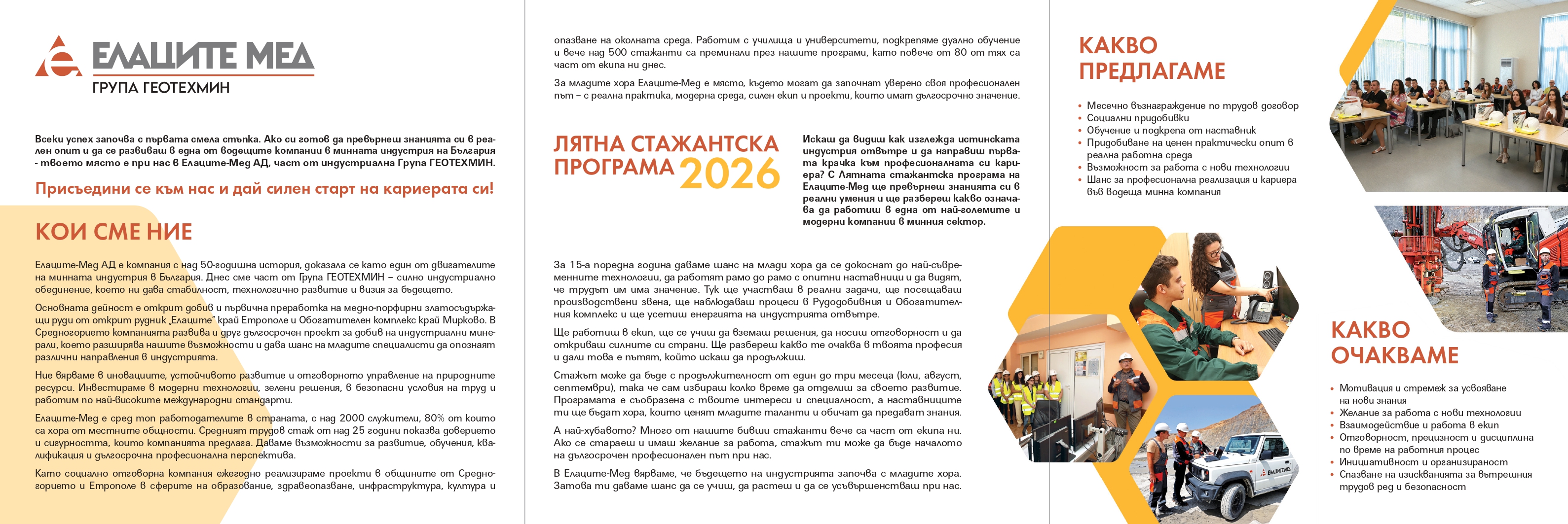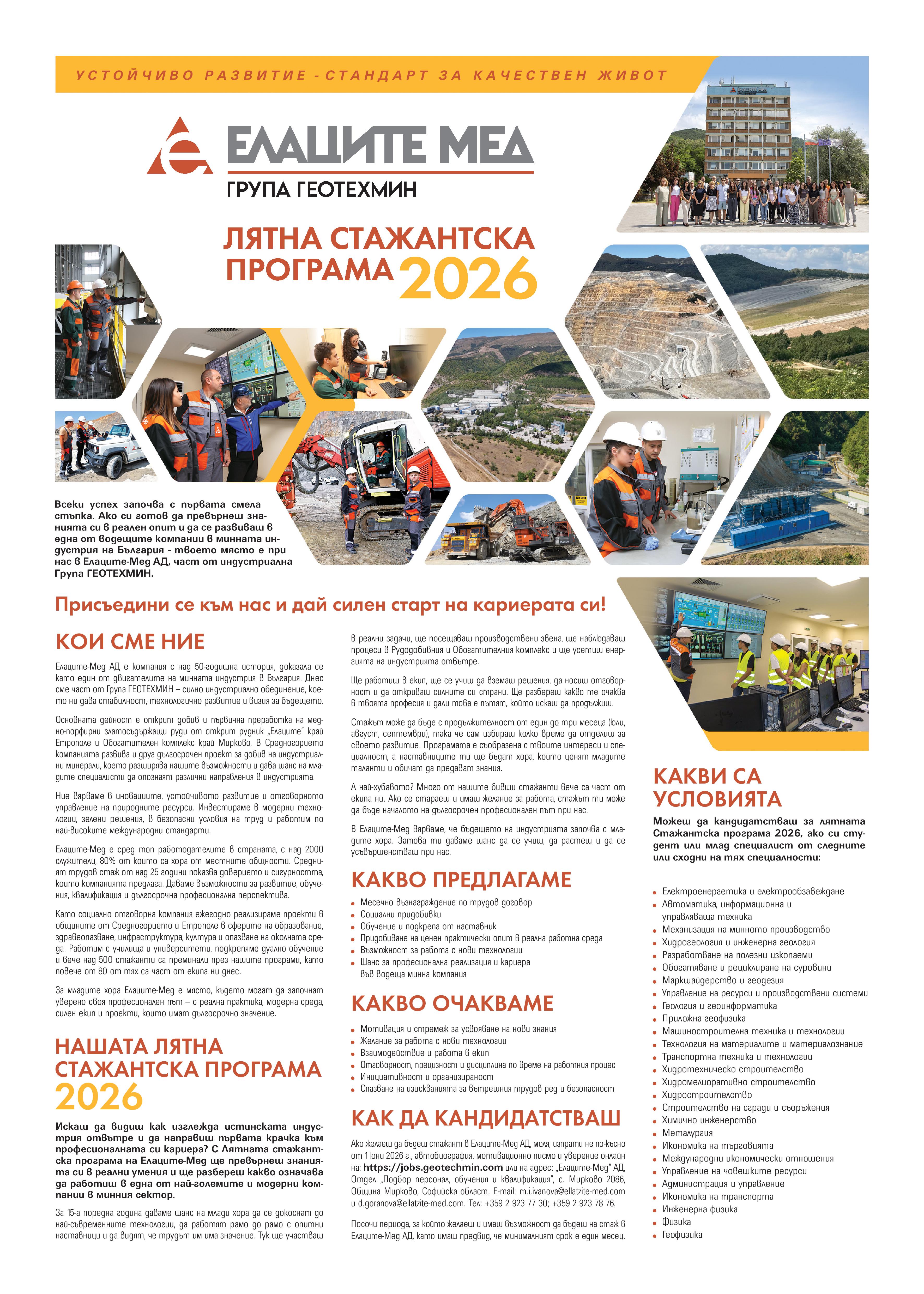 Стажантска програма 2026г. на Елаците-Мед АД