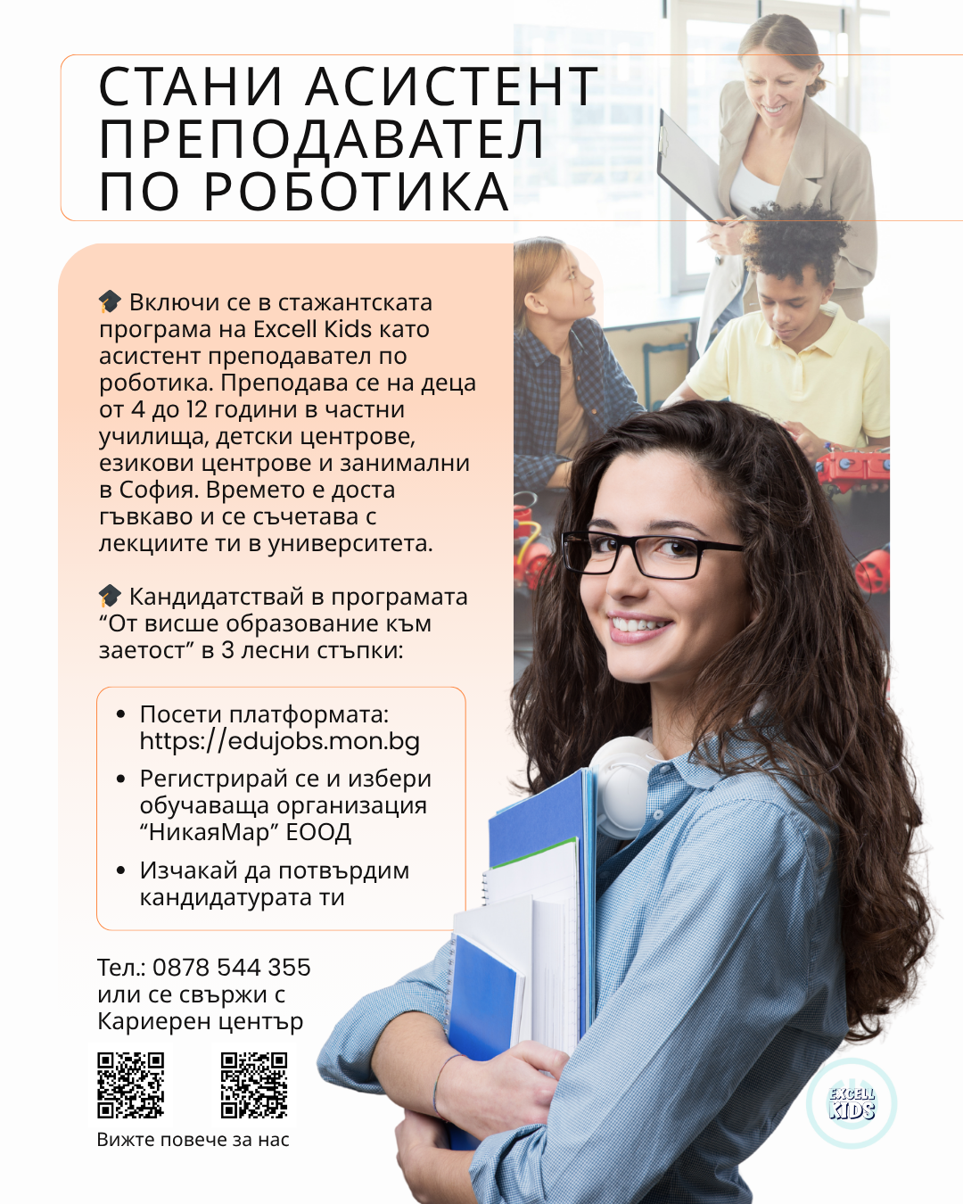 Включи се в стажантската програма на Excell Kids като асистент преподавател по роботика